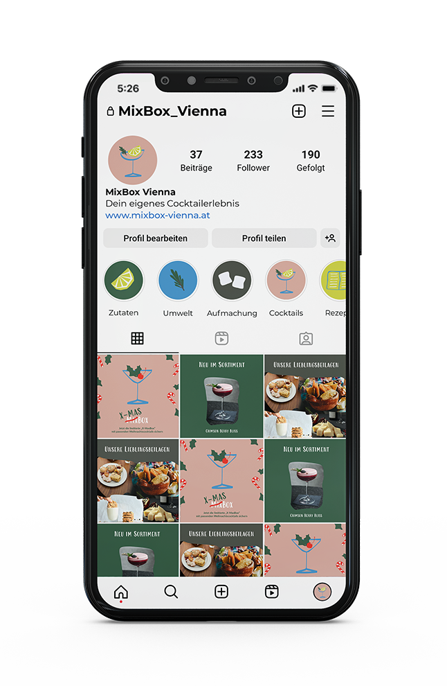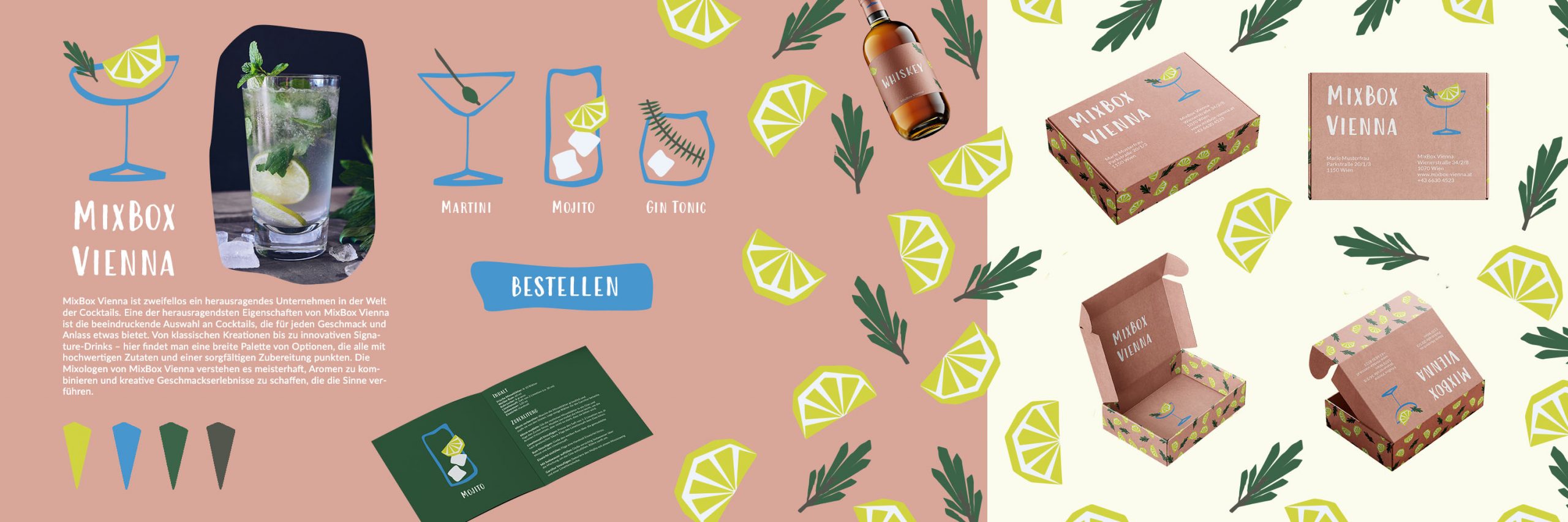 MixBox ist ein universitäres Projekt, dessen Ziel die Entwicklung einer Corporate Identity für ein fiktives Unternehmen war. Das mir zugewiesene Unternehmen hieß MixBox Vienna. MixBox ist ein Dienstleistungsunternehmen, das, ähnlich wie HelloFresh, alle notwendigen Zutaten in einem Paket liefert. Der entscheidende Unterschied besteht darin, dass HelloFresh Mahlzeiten anbietet, während MixBox sich auf Cocktails spezialisiert.